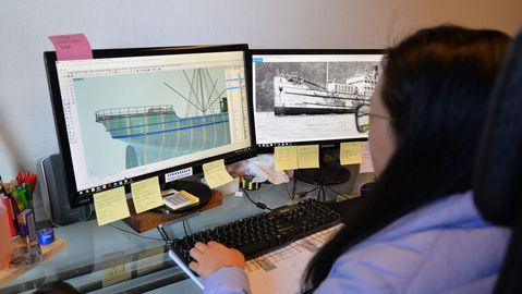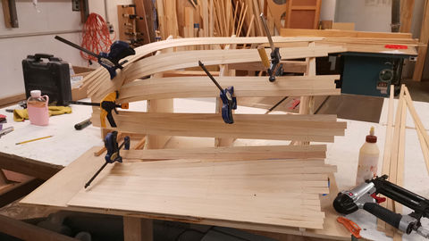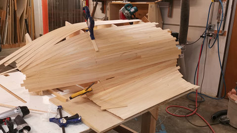 Selecting materials for flexibility & durability and using traditional boat building methods to construct hull sections.
