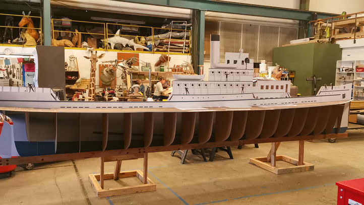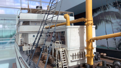 Milling a scale model of the Arcturus ship and studying its form using historical photos for accuracy.