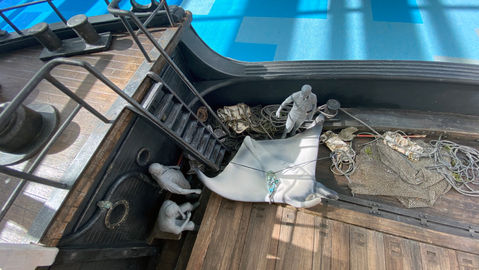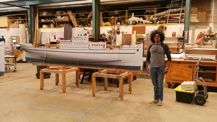 Acclaimed Artist Mark Dion and Creative Director of Scientific Art Studio Ron Holthuysen teamed up to create a 21-foot sculpture of the Arcturus. The Arcturus was a cargo steamship that was converted into a research laboratory for marine exploration in 1925. It was fully equipped for deep-sea scientific research and headed by celebrity explorer William Beebe.