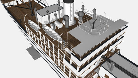 Using people and objects next to the ship elements to assist in closely approximating sizes and distance. Creating the entire set of 3D models for the Arcturus project based solely on my research, as little documentation exists for the actual ship.